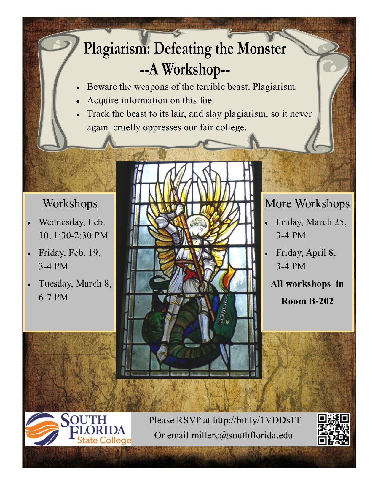 Our college, like many others, had a plagiarism problem. But maybe out students didn't know how to avoid it. Miller designed and delivered a stand alone workshop specifically targeting plagiarism. Preliminary results show a drop in plagiarism rates among students who took the workshop, and the faculty LOVE it. See preliminary results and learn how to slay your own dragons of plagiarism!